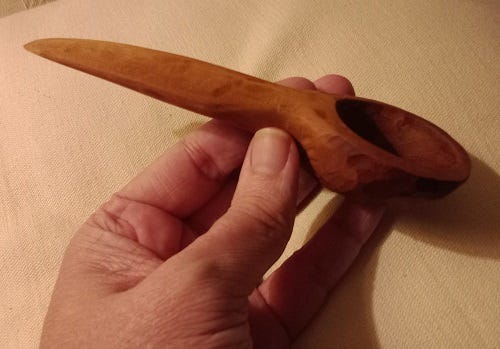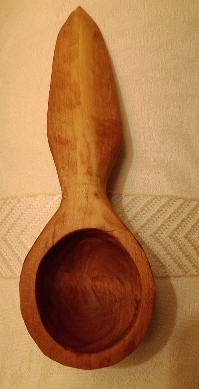 I think whoever buys this this will enjoy using it. As always, my woodwork is sustainably sourced from trees that are storm damaged or that must be thinned. Each piece is entirely hand made in the ancient greenwood tradition. I use only a hand saw, a small axe and knives. These are heirloom quality spoons that, if properly cared for, will last for generations.